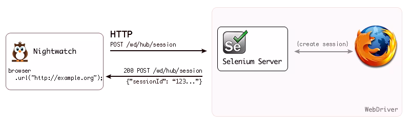 Under the hood, the Nightwatch test runner communicates with the Selenium server over the Selenium WebDriver Wire protocol.