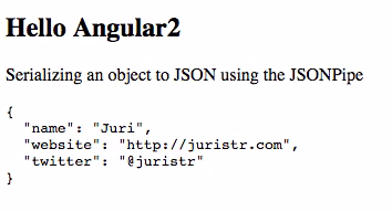 A powerful way of debugging, especially templates, in Angular 1 was the JSON pipe (or filter) which could be used within a template. The pipe still natively exists in Angular. Here’s how you can import and use it.