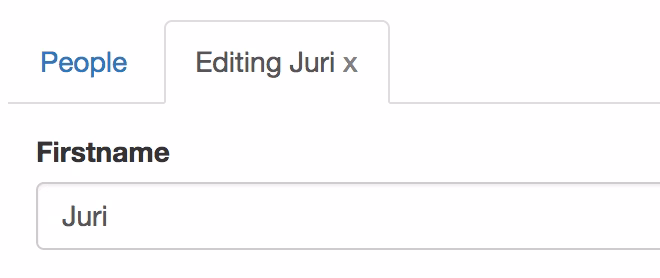 Note, we have a tab open editing the person “Juri” while at the same time creating a new person record. As such, each template needs to get its own specific data. Luckily enough, there’s a way to do so.