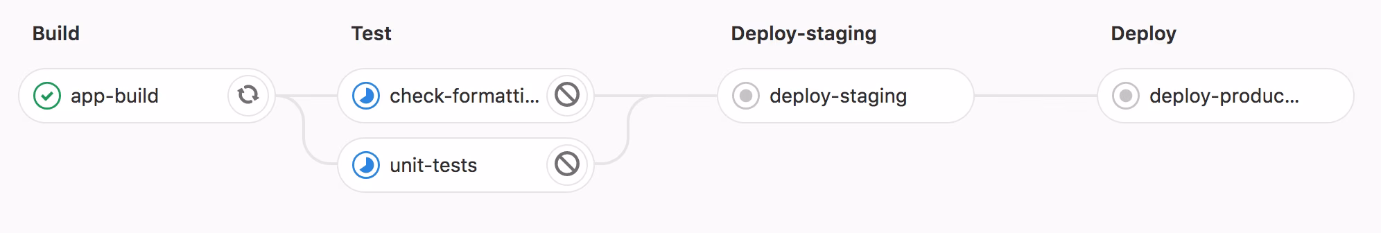 npm scriptsor other kind of local script files that are simply invoked from the CI server. That way it’s easy to run them locally on your machine as well.
