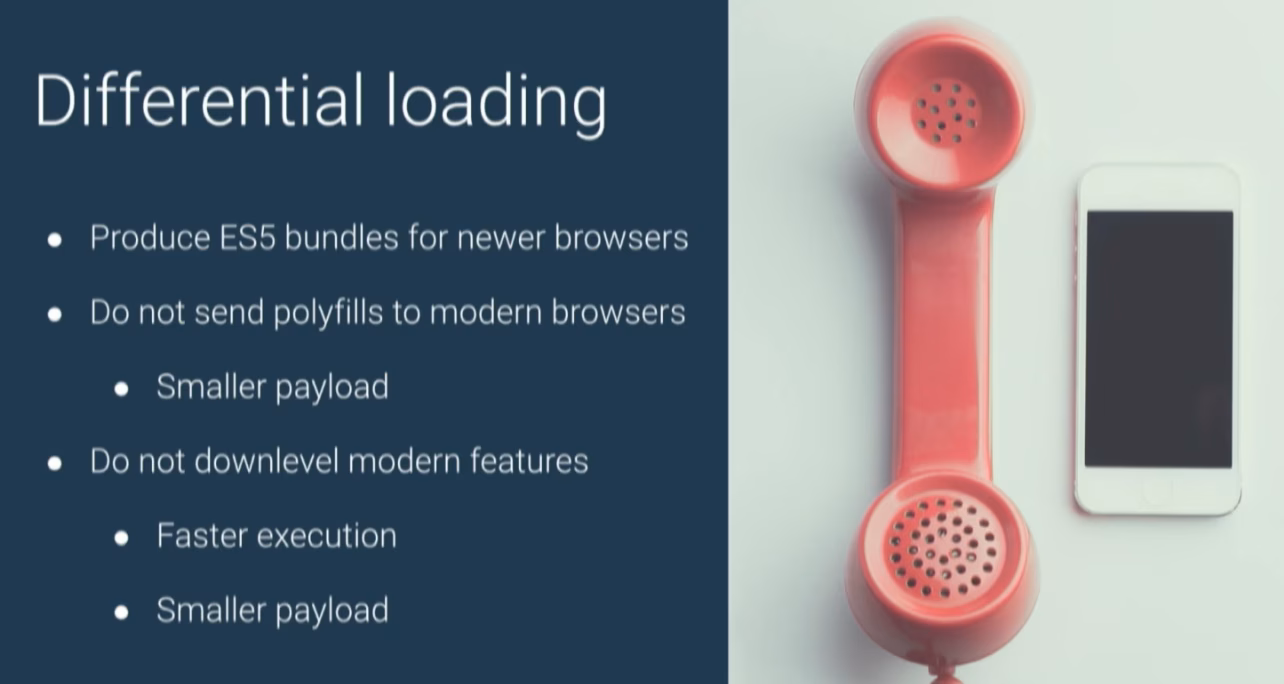 One of the main features that are coming in v8 is differential loading. Performance has high priority for the Angular team and the Chrome team at Google in general. Among other optimization techniques (i.e. see my lazy loading article), differential loading creates two different bundles: one for legacy browsers and one (with reduced polyfills) for modern evergreen browsers.