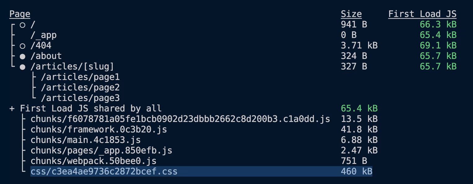 Right now, if we run npx nx run site:export, we’ll see that there’s quite a large CSS file that gets exported: