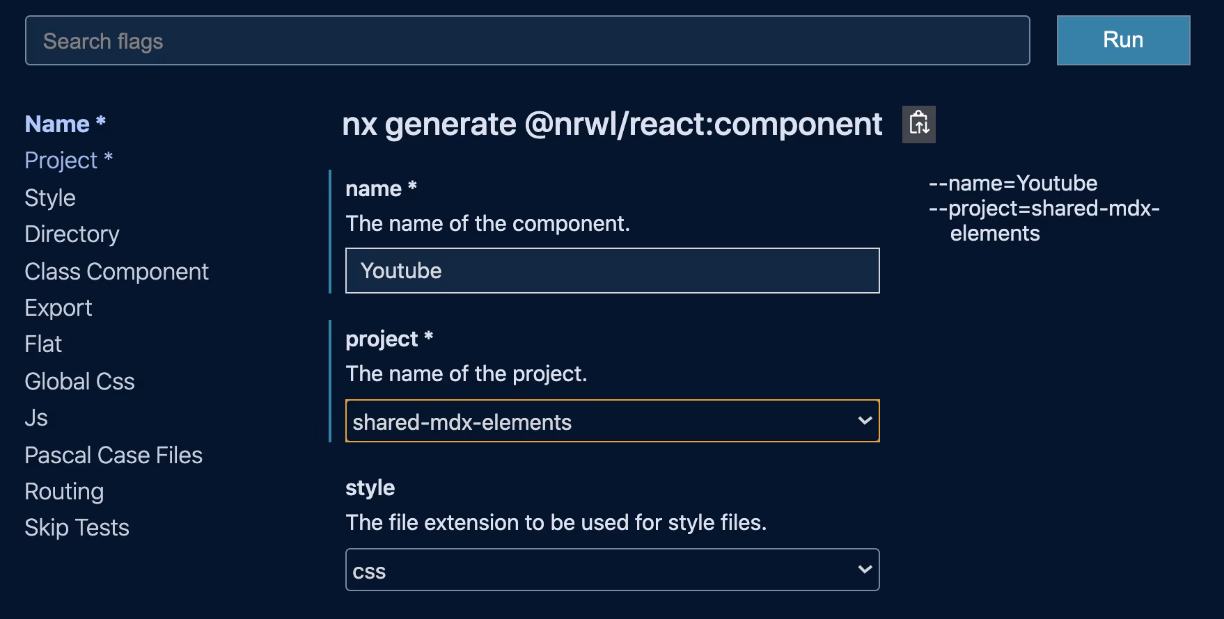 Note, apart from using Nx Console to visually construct these commands, you can also always append
