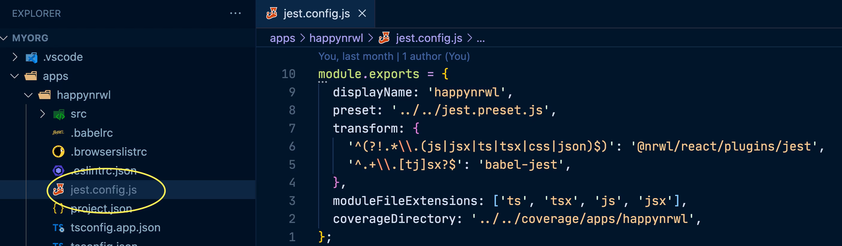 At the root of every project, there’s a jest.config.js which already comes with proper transformers to support TypeScript and TSX/JSX. If you need to further customize how Jest should behave for this project, this is the place to do that.