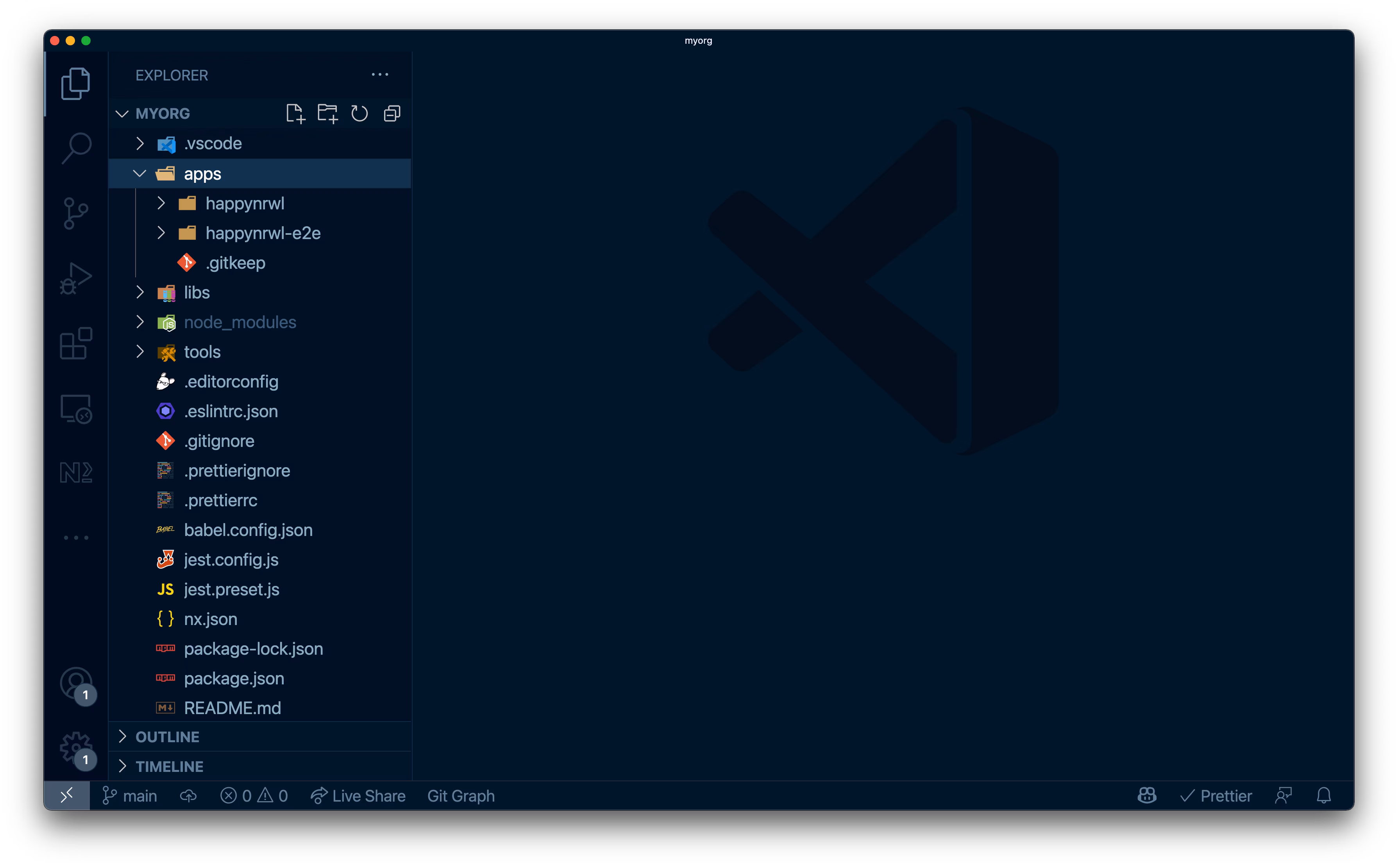 You should end up with a new Nx workspace and our happynrwl React app in the apps/ folder.