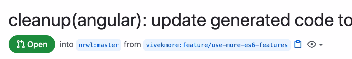 So in this case that’d be vivekmore:feature/use-more-es6-features